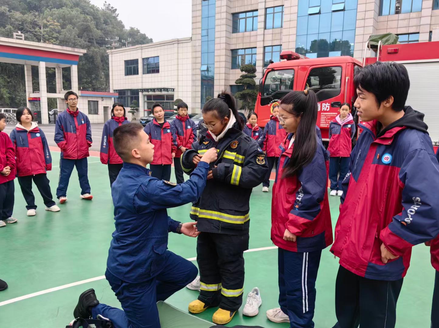 “致敬火焰蓝 安全伴我行”2025年消防开放日活动在富顺县举行,富顺县东湖初级中学校60余名学生代表走进消防大队,“零距离”接触消防、学习消防、体验消防,直观了解消防员的日常工作与责任担当。