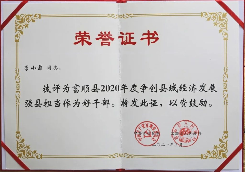 会上,富顺县人民检察院获“富顺县2020年度争创县域经济发展强县担当作为先进集体”表彰,该院李小菊同志获“富顺县2020年度争创县域经济发展强县担当作为好干部”表彰。