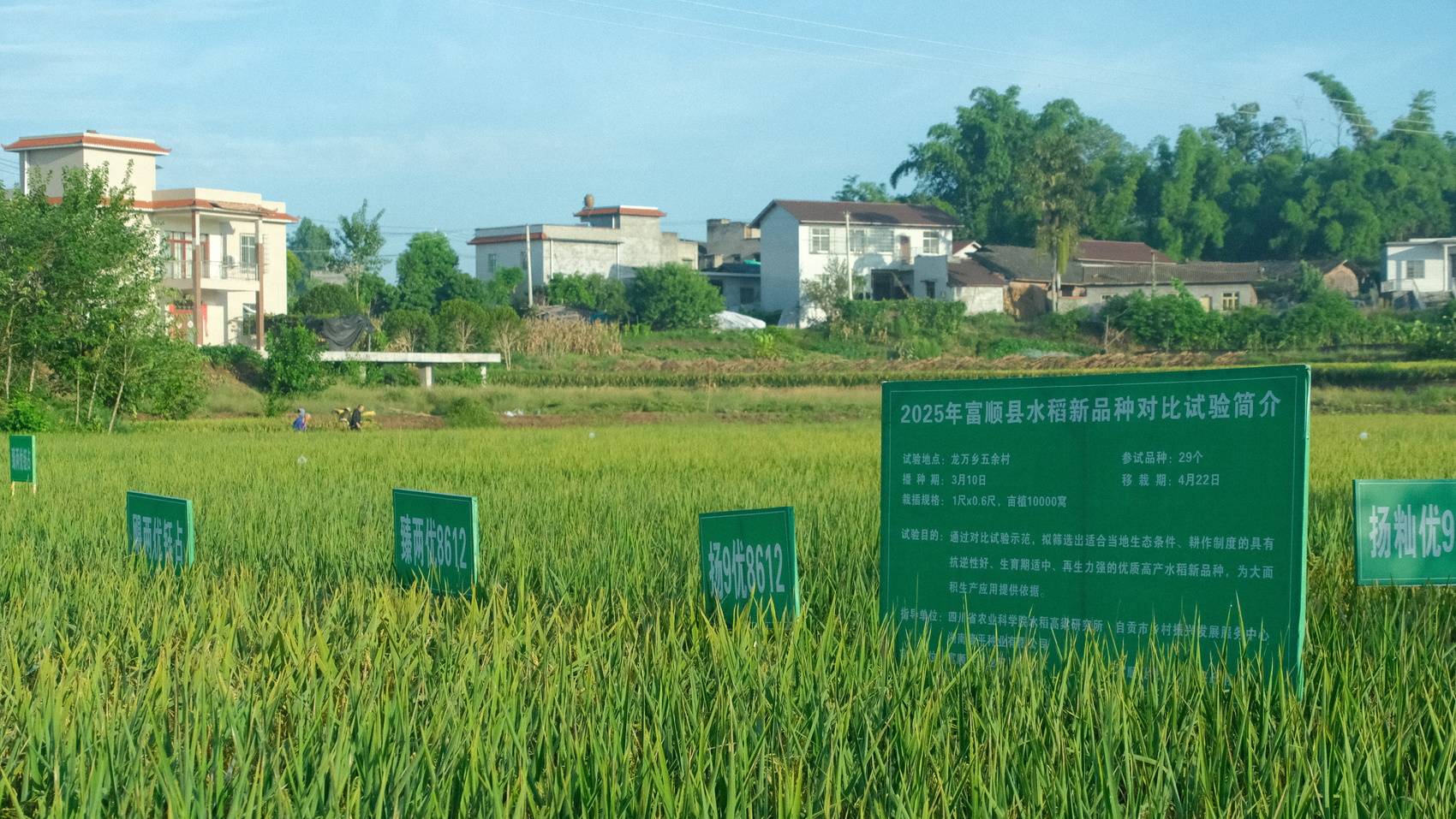 8月12日,当清晨的阳光洒在龙万乡五余村稻田示范基地,工作人员正在对29个实验性水稻品种进行紧张收割测产,呈现出一派繁忙丰收景象。经过现场测产,隆平高科种业公司提供的18个品种与富顺县主推的11个品种,平均亩产量达到700公斤,比其它品种增产50公斤,单产水平显著提升。