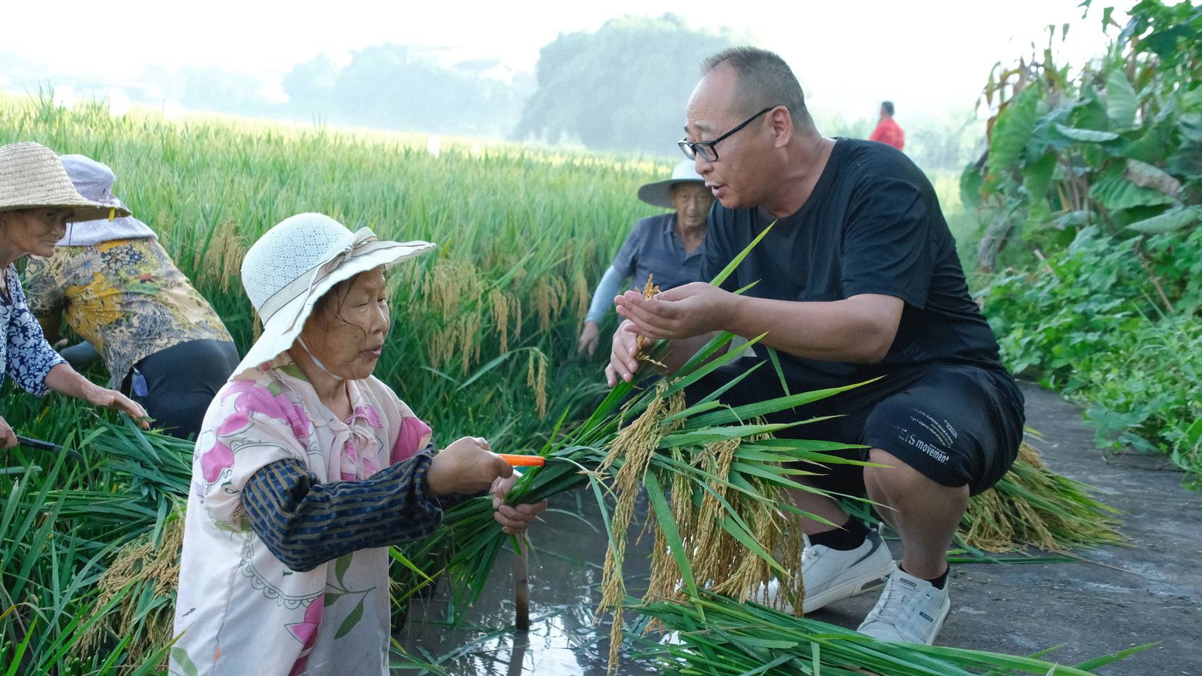 “这个品种的稻子很压手,比我之前种的重多了,穗长颗粒数多,亩产能达700公斤,来年我也要种这个品种。”参与收割的五余村村民雷大贵说道。