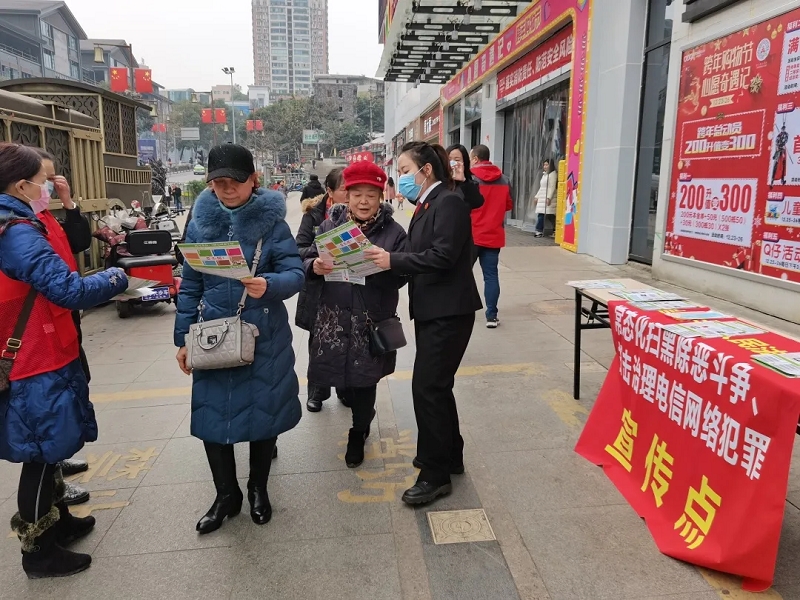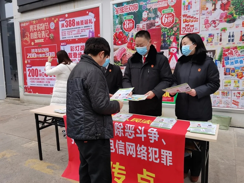 为进一步加大禁毒、反诈及扫黑除恶宣传力度,深入推进扫黑除恶常态化斗争,提高辖区居民法治意识,日前,自贡市自流井区人民法院联合新华路社区、钟云山社区在梅西步步高广场开展禁毒、防范电信诈骗、常态化扫黑除恶斗争主题法治宣传活动。