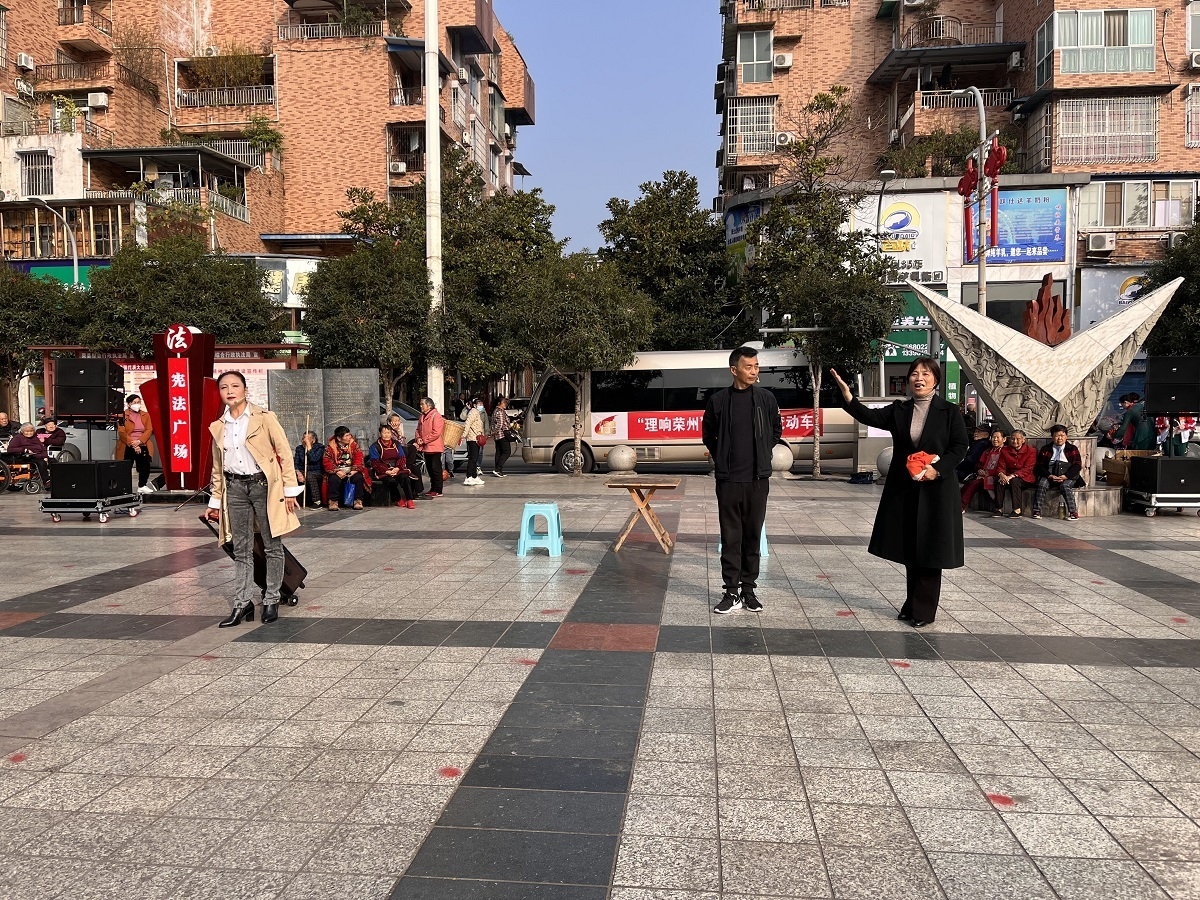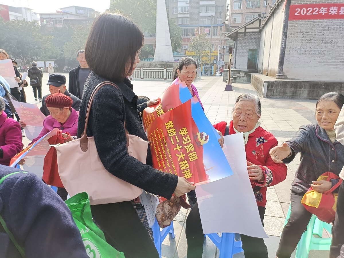 11月27日,荣县县委宣传部组织理论宣讲志愿者走进旭阳镇首义广场,通过歌曲、小品、现场宣讲、知识竞答等“文艺+理论+互动”的形式,开展学习党的二十大精神基层宣讲活动。
