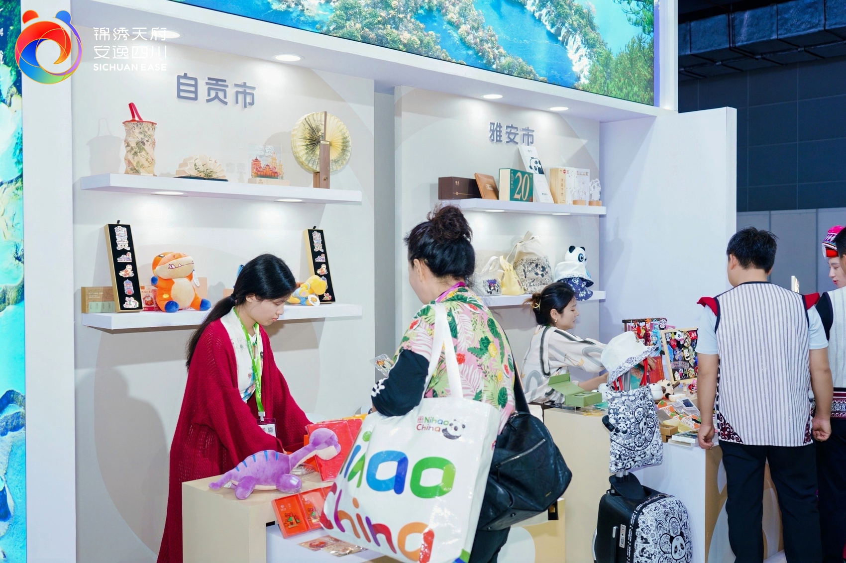 本届旅交会以“中国自贸港世界度假岛”为主题,设五大特色展区,四川展厅以“锦绣天府安逸四川”为主题打造沉浸式体验空间。自贡展位集中陈列灯具、公仔等多品类文创产品,同步推出美食试吃活动,生动展现“千年盐都、恐龙之乡、中国灯城、美食之府”的独特魅力,吸引众多观众驻足打卡。