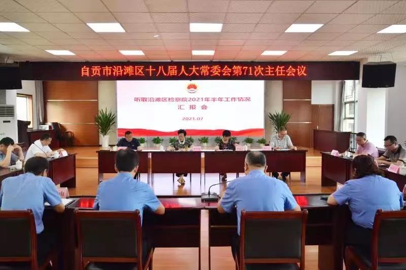7月22日,自贡市沿滩区十八届人大常委会第71次主任会议在沿滩区人民检察院召开,专题审议该院2021年上半年工作情况报告。区人大常委会主任黄翠梅、副主任李会兰、阳丁、雷云生出席会议,该院全体在家班子成员参加会议。