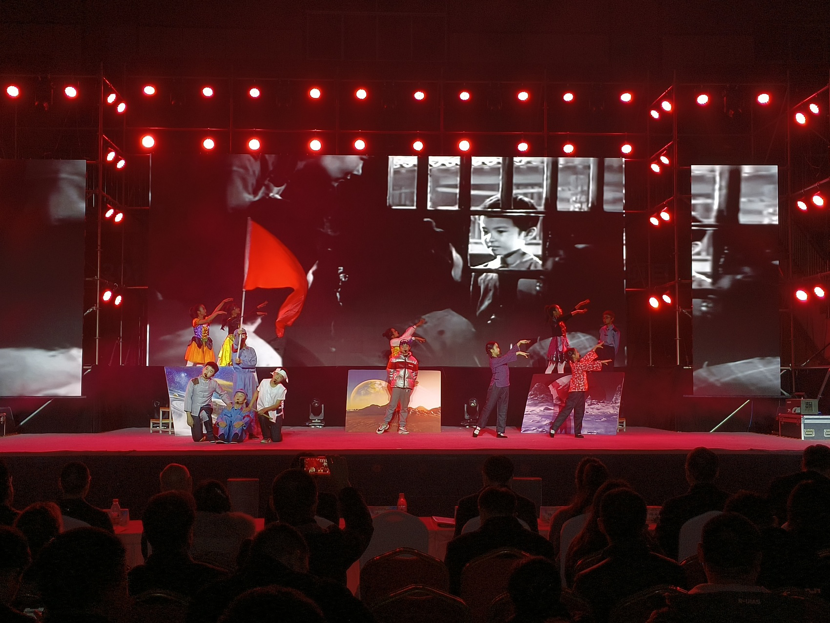 富顺历来崇文尚学,底蕴深厚,是素有“才子之乡”美誉的千年古县,而在此次汇演中更是表现得淋漓尽致。旋转、走位、跳跃,略施粉黛的舞者身穿粉白的连衣裙在舞台上如桃花般绽放,寓意着教师的桃李芬芳,演出也在这原创歌舞《托起明天的太阳》中拉开帷幕,随后恢弘壮阔的器乐合奏《映山红》、古风古韵的舞蹈《执镜俑》、声情并茂的童声诵读《实小赋》轮番登场,由一群“特殊孩子”带来的舞蹈《因为有你》让人动容,而淘气的王闹闹穿越到特殊星球和潘东子、王小二等做朋友的红色教育课本剧《红孩子》更让人潸然泪下,由罗芝家、尹小红原创,衡川实验学校表演的音诗画《强县梦.教育魂》充分展现了近年富顺教育强县建设的累累硕果。最后,演出在歌伴舞《领航》中完美谢幕,赢得台下观众掌声连连。