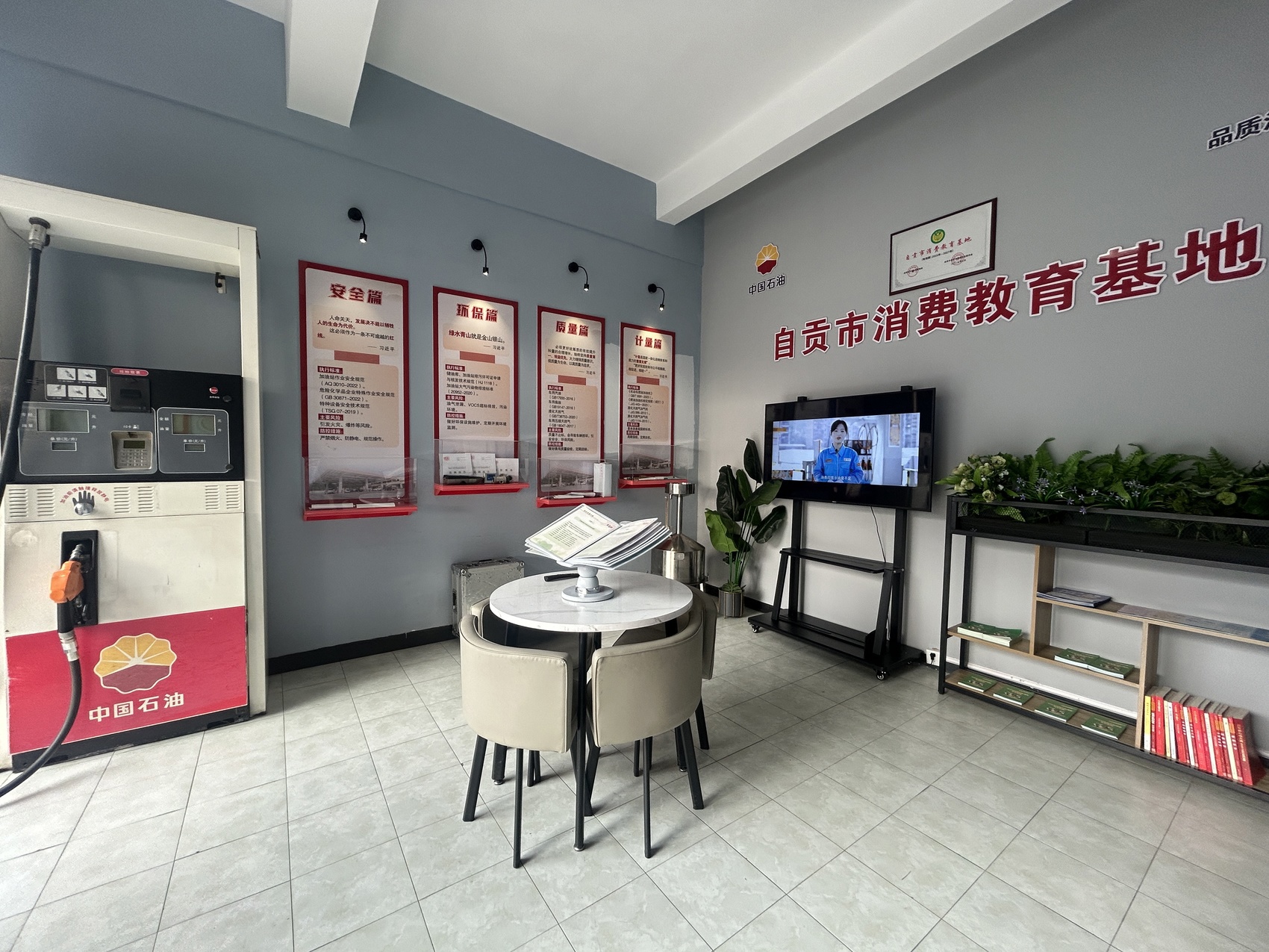 此外,南湖加油站里还藏着一个消费者教育基地,作为响应自贡市市场监督管理局号召打造的民生工程,这个今年9月正式验收授牌的教育基地,聚焦消费者痛点,专门梳理加油常见误解,编制通俗易懂的答疑手册和趣味科普视频,把专业知识变得接地气,让大家一看就懂、一学就会。