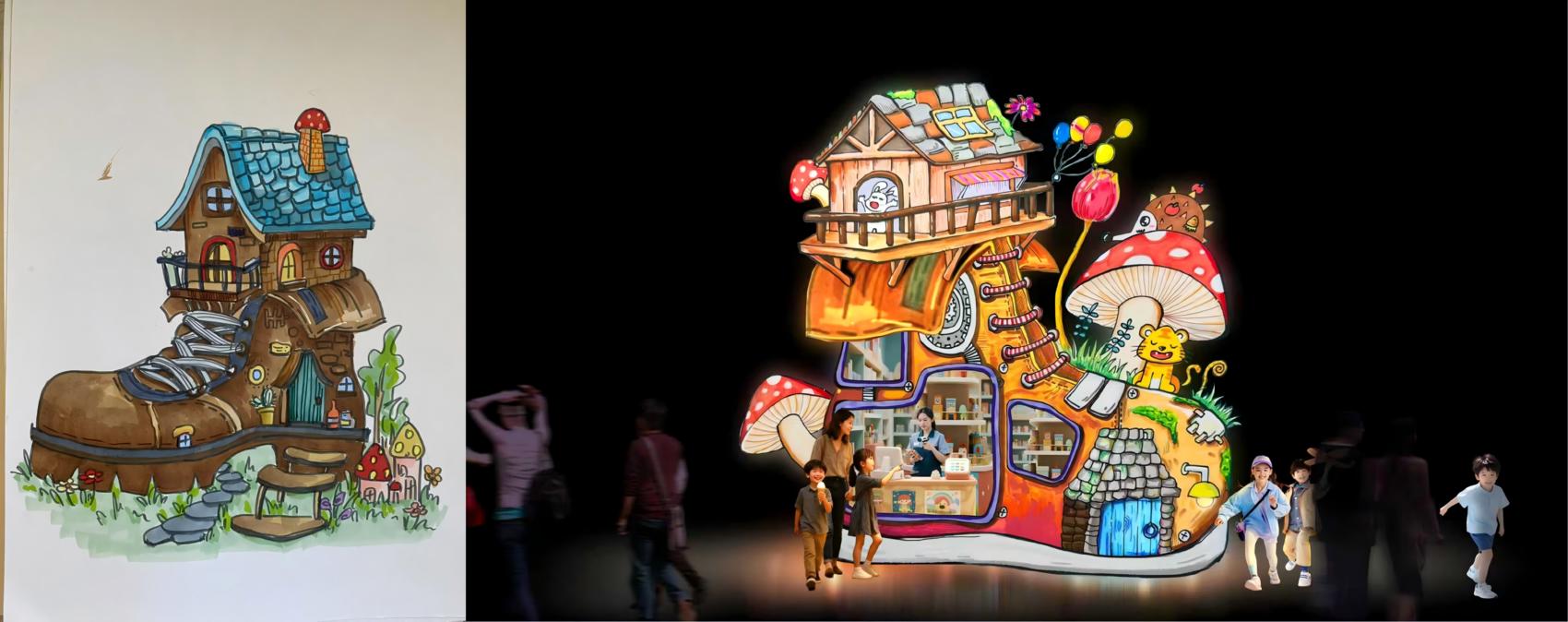 在自贡中华彩灯大世界内,工匠们正紧锣密鼓地将来自世界各地的儿童二维平面画作转化为立体光影艺术作品。“创作过程中最大的挑战在于精准捕捉儿童画作的独特神韵。”工匠李师傅指着山东小朋友屈泳淇的作品介绍,该作品将靴子创意想象为“房子”,为还原这一童真构想,他与团队历经多次试验,尝试三种绸缎材质与五种灯光组合方案,最终达成最贴合原作的“魔法靴”呈现效果。