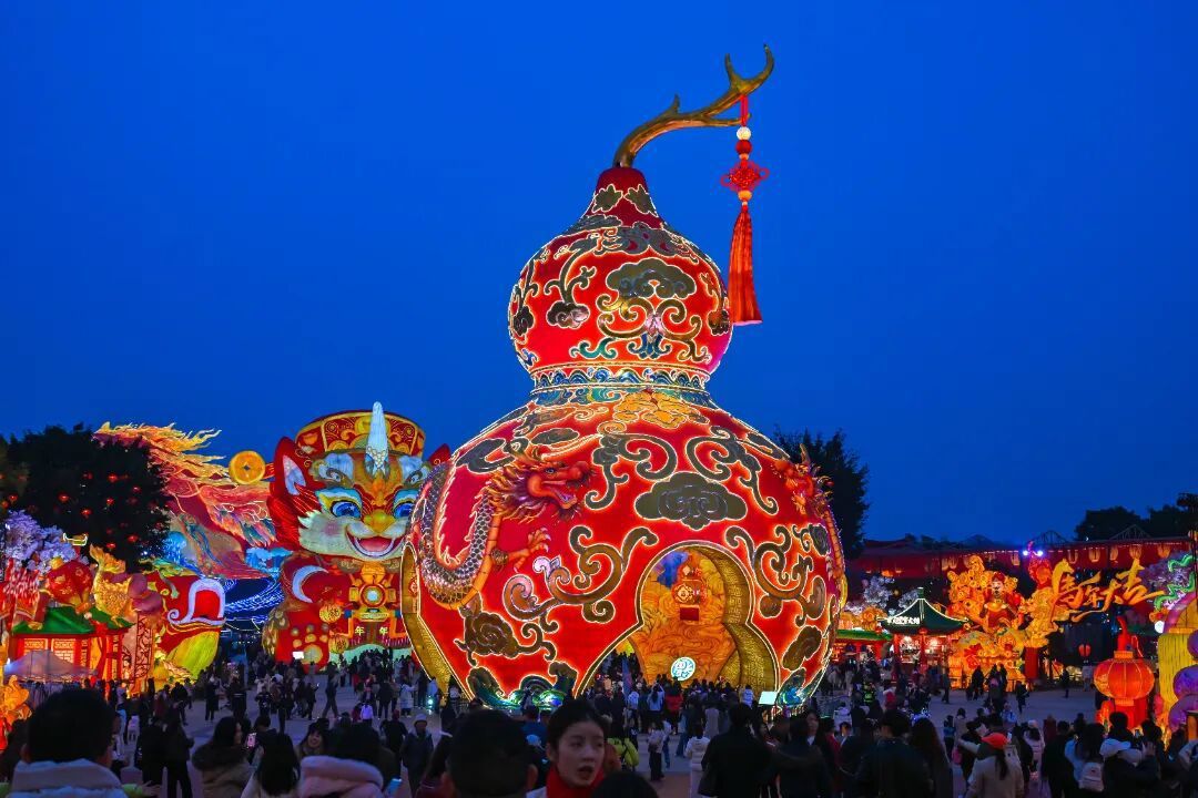 《福禄双至》《年年招财》《木兰传奇》《荷荷美美》《神奇华夏》《创想美灯汇》等核心灯组各具特色,既有30米高福禄葫芦、180米木兰长卷、210米鲲鹏光影等震撼景观,也融入互动科技、东方美学与童真创意。灯会还联动四大热门IP,打造潮流互动展区,让传统非遗焕发年轻活力。