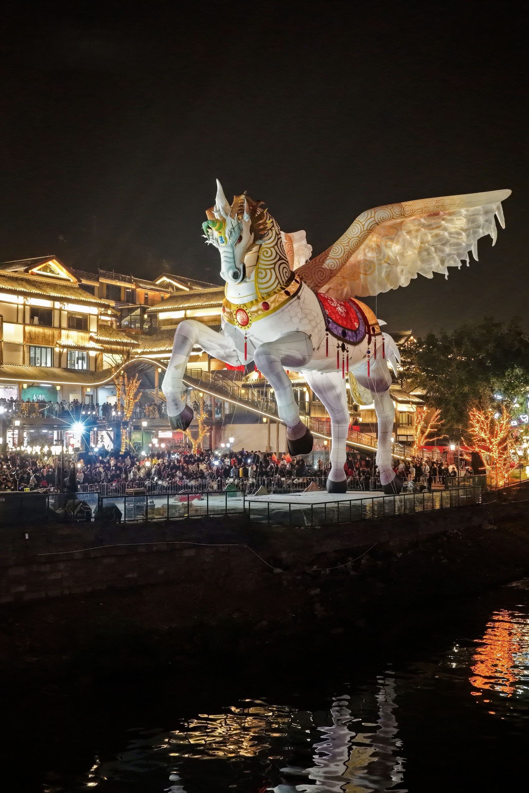 本次艺术季特邀知名艺术家殷九龙,打造《东方神怪艺术展》。28米巨型飞龙马艺术空飘装置,以“龙马精神”契合马年寓意。同时,艺术家罗鸣创作的互动式“跑马灯”装置,让传统民俗在光影流转与游客触碰间重获新生。