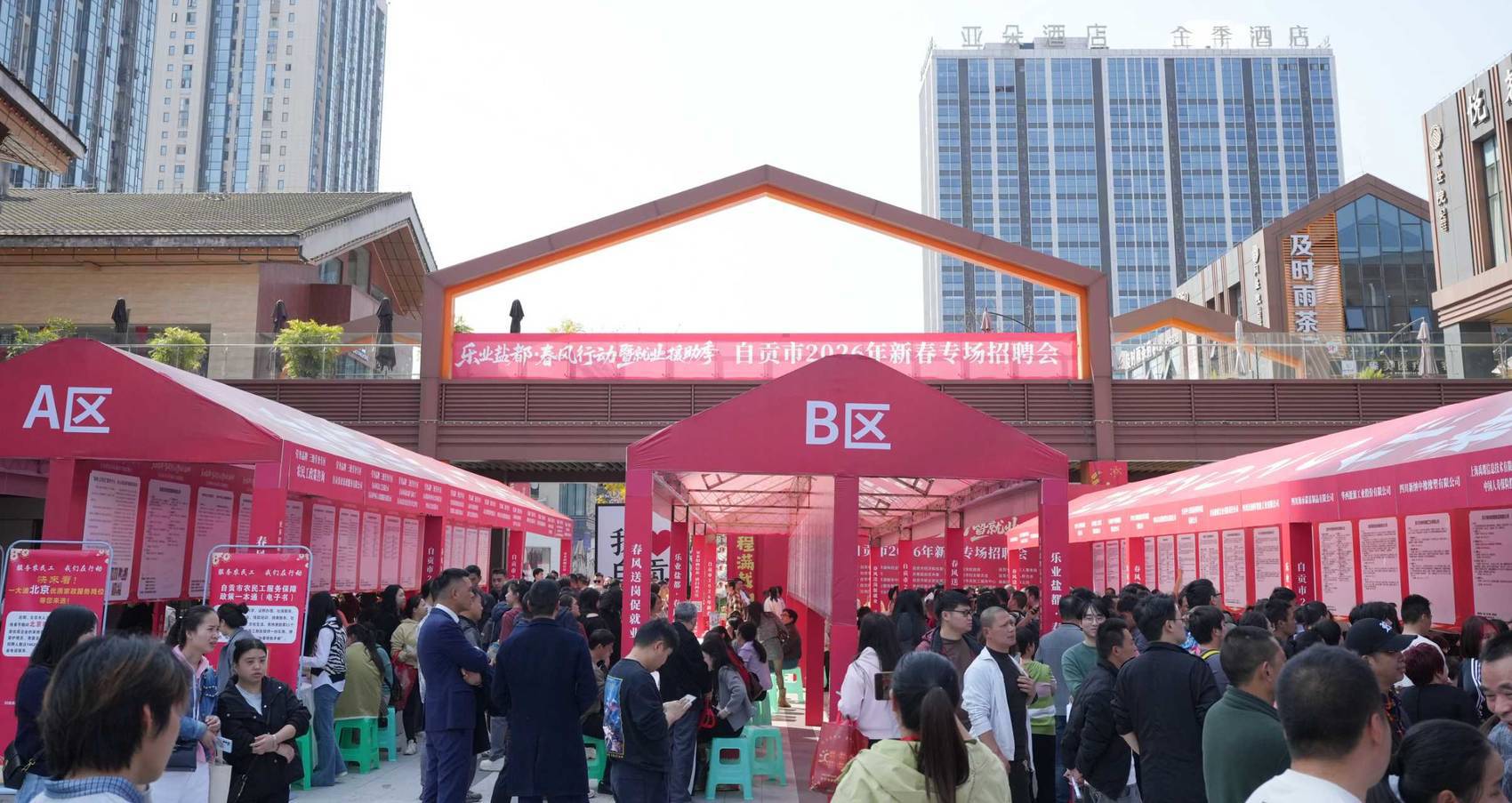 2月25日下午,自贡市2026年“乐业盐都·春风行动”专场招聘会在华商白鹿广场举行。活动现场,191家优质企业整齐布展,带来就业岗位5361个,涵盖节能环保、新能源、新材料、无人机及通航、人工智能、大健康等重点产业领域。求职者们手持简历穿梭于各展位间,咨询岗位情况、填写意向表,现场气氛热烈而有序。