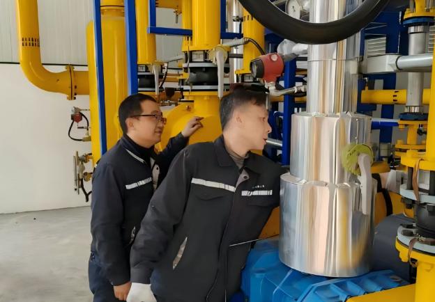 在大安区,自贡硬质合金有限责任公司内,春节期间便是一派繁忙景象。当千家万户沉浸在团圆的年味中时,不少干部职工依然默默坚守在生产线旁——原料生产、压制成型、烧结出炉、检验包装,每一个环节都有条不紊、井然有序。正月初五,年味正浓,为确保新氢净化系统调试成功,该公司粉末事业部203工段还原班组长蓝师傅与维修班组长郭师傅坚守在岗,一丝不苟地配合厂家技术人员反复核验参数、排查隐患。“设备早投产,产能早释放。”朴实的话语中,透出的是产业工人用坚守保障交付不停歇的责任与担当。