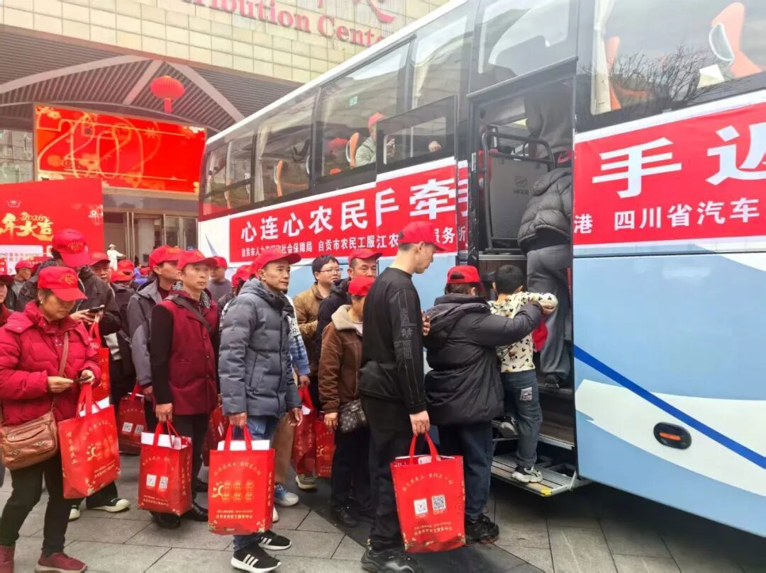 2月27日清晨,一辆载有100名自贡籍农民工的返岗免费专车从自贡汽车客运总站驶出,前往浙江省杭州市。此次运输采取“点对点”直达模式,为外出务工人员提供返岗便利。