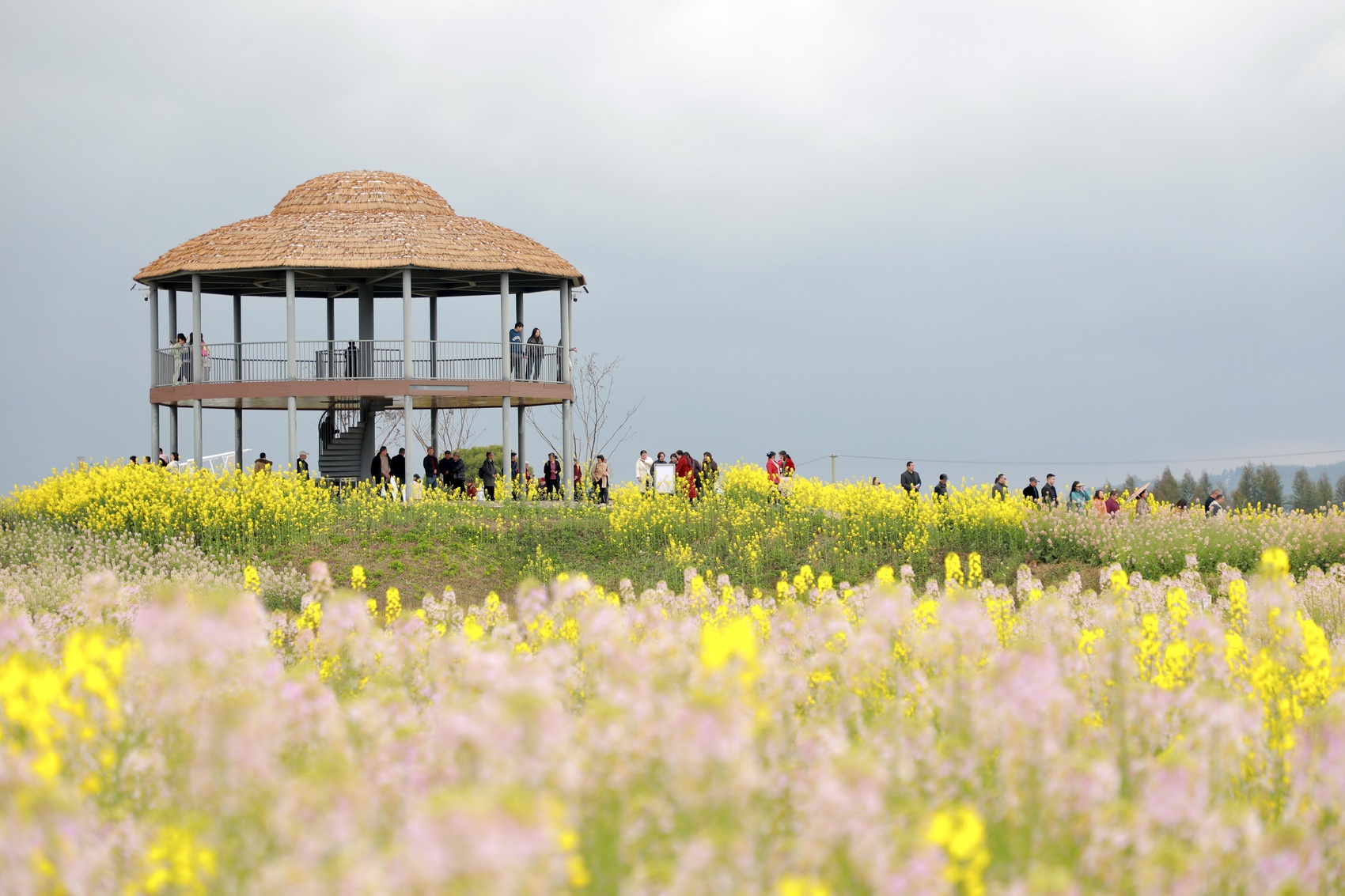 正安穹窿花田是本次活动最亮眼的风景线。金黄、浅黄、橙黄的油菜花层层叠叠,随风翻涌成金色波浪,宛如大自然绘就的巨型油画。景区游步道串联起多处观景打卡点,游客漫步花间,用镜头定格春日限定美景。“这里的花海又大又美,特意换上了汉服来拍照,出片效果超出预期!”身着汉服前来打卡的游客赵芯玉笑着分享道。