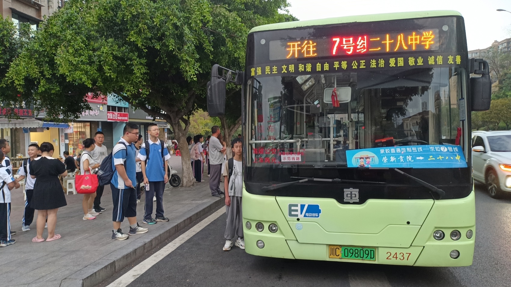 这是自贡公交集团针对新学期开行的27条家校直通车“乐学号”。覆盖塘坎上小学、檀木林小学、二十八中、六中、汇东实验学校(南湖校区)等11所中小学,提供从家门到校门的“一站式”服务。