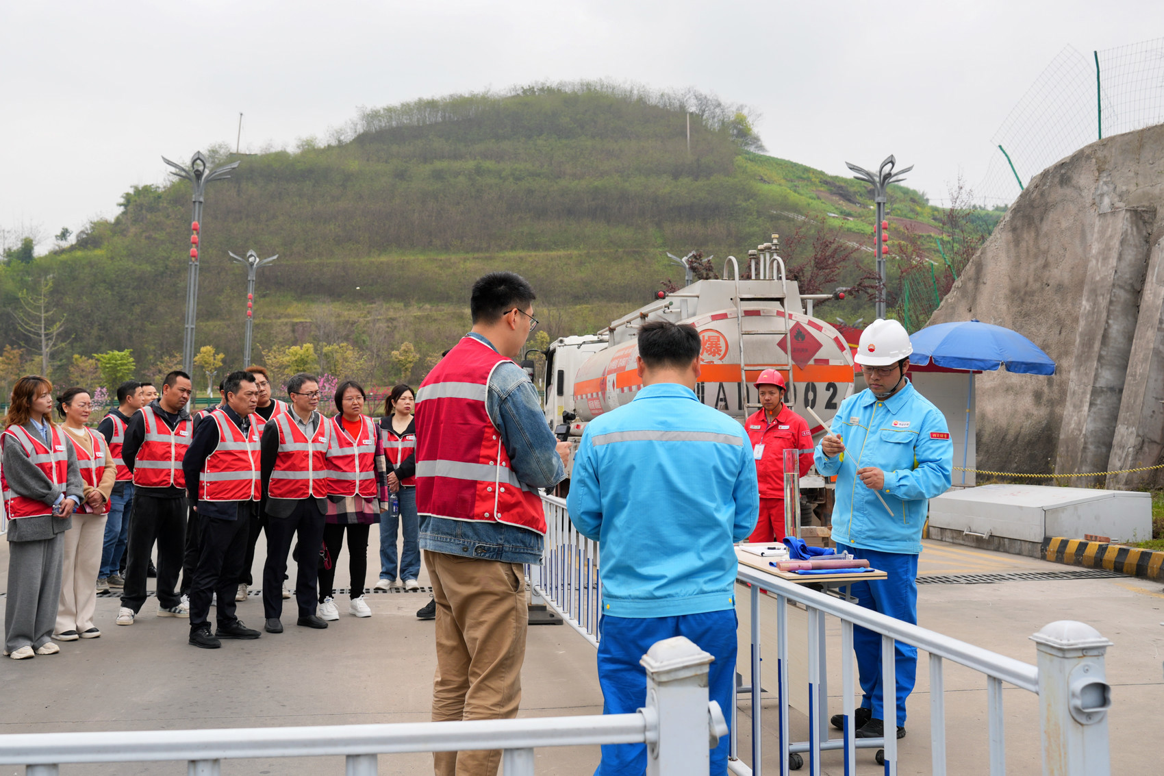 随后,参与人员前往舒平油库,深入储油罐区、下坝区、消防泵房、油品化验室、接卸区、发油场等重点要害区域,现场观摩火灾应急演练,实地了解油库的安全运营与油品质量管理的全流程。