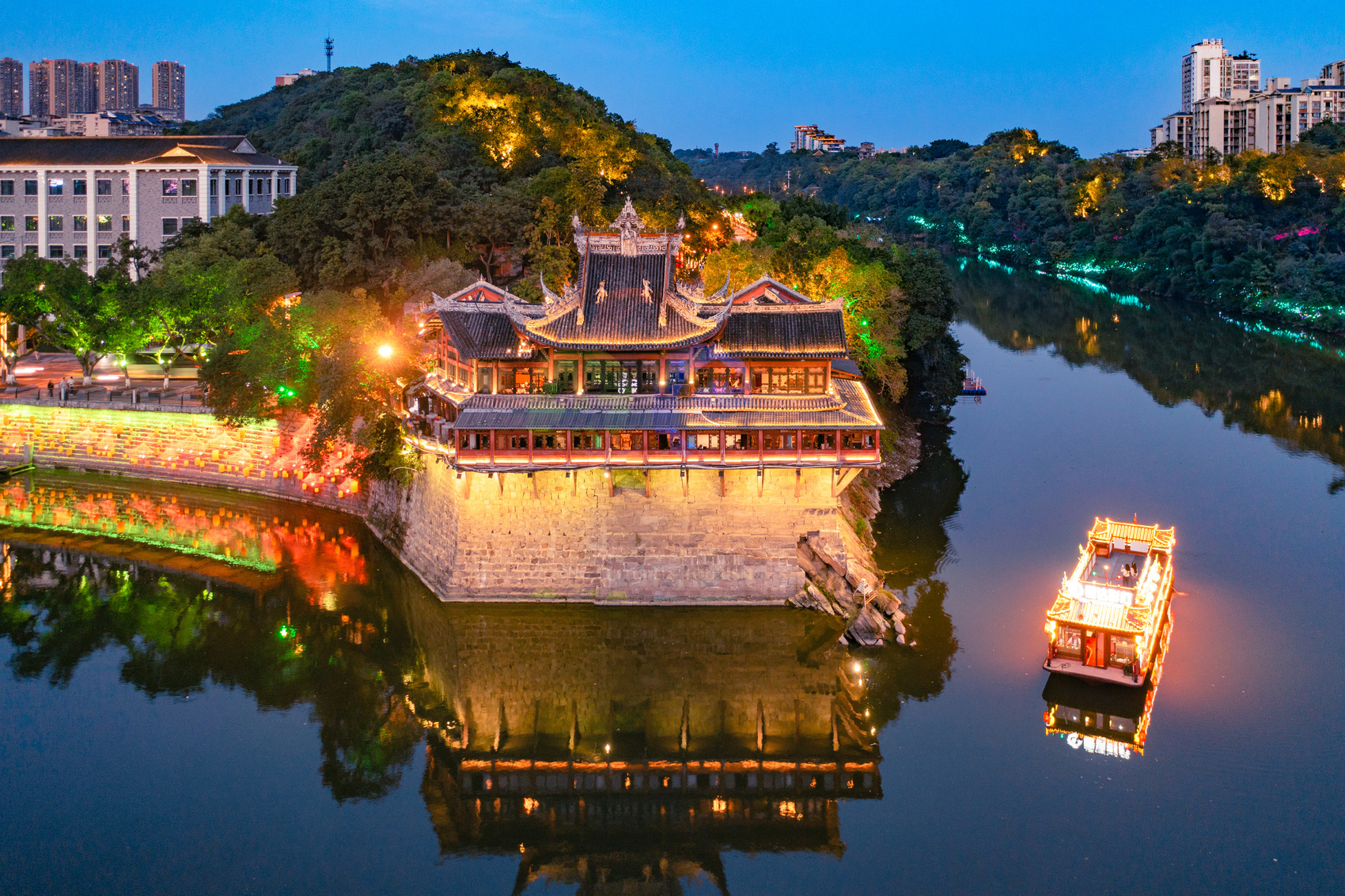 本次活动采用“线上+线下”结合的参与方式,市民游客通过“自贡文旅”小程序完成任意5个点位打卡任务并分享到社交平台,即可兑换限量联名奖牌、夜游釜溪不限时五折优惠券。此外,还有机会获得限量IP周边。