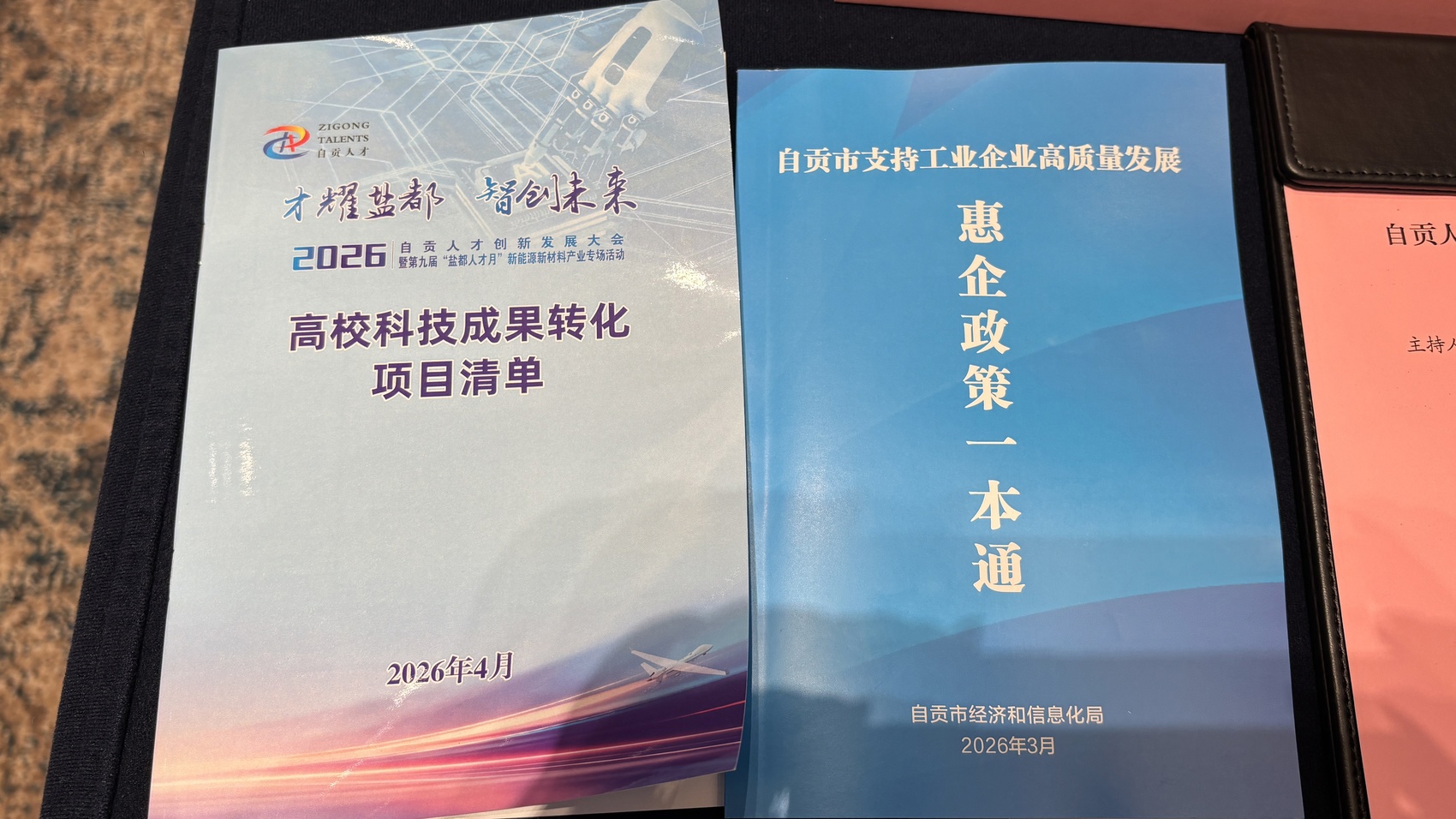 4月7日下午,自贡人才创新发展大会新能源新材料产业专场活动现场,每位参会者桌上都摆着两份材料:《高校科技成果转化项目清单》和《自贡市支持工业企业高质量发展惠企政策一本通》。