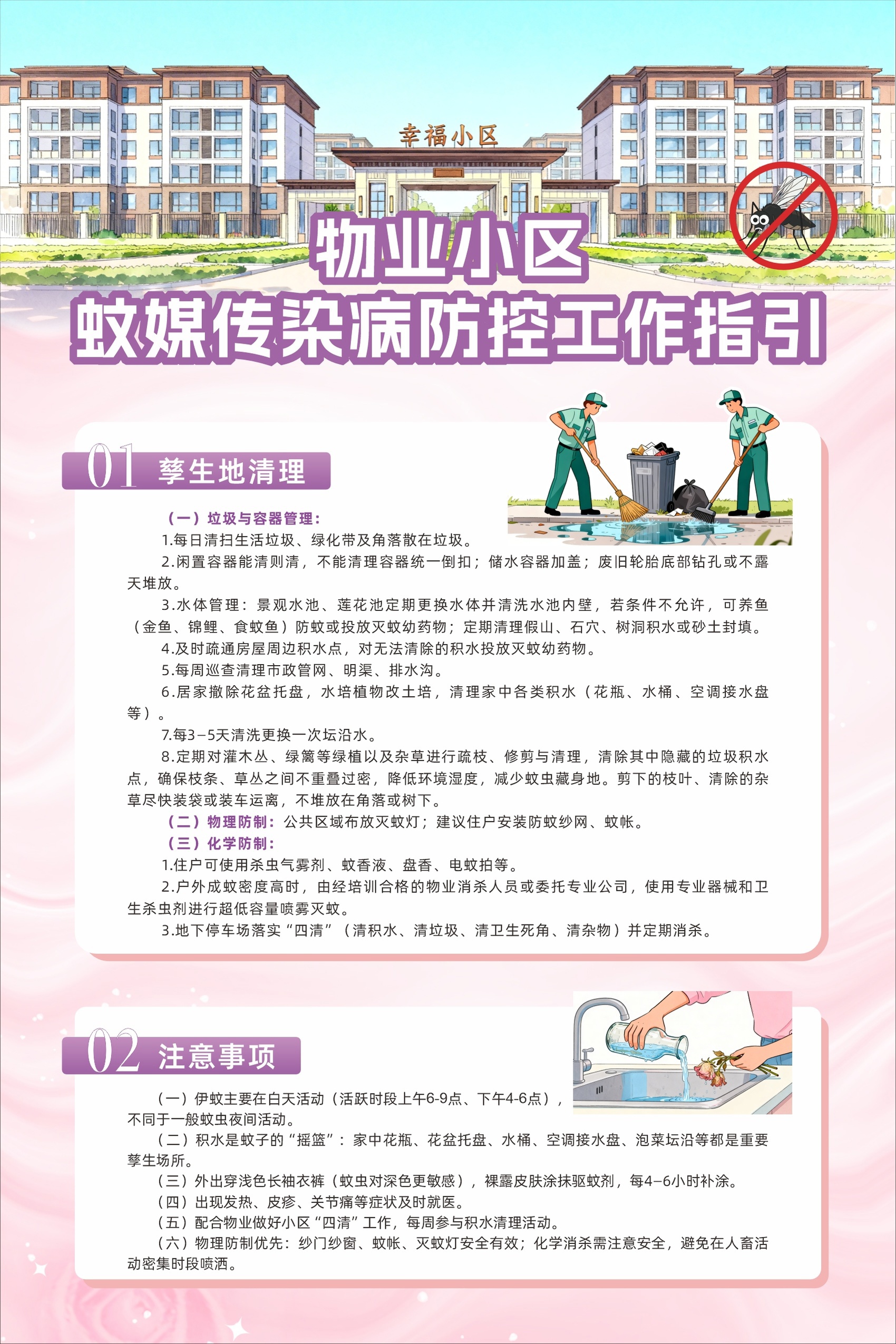 点击蚊媒传染病防控工作指引图,即可查看各类场所科学防蚊灭蚊全攻略,轻松远离蚊扰、守护健康。