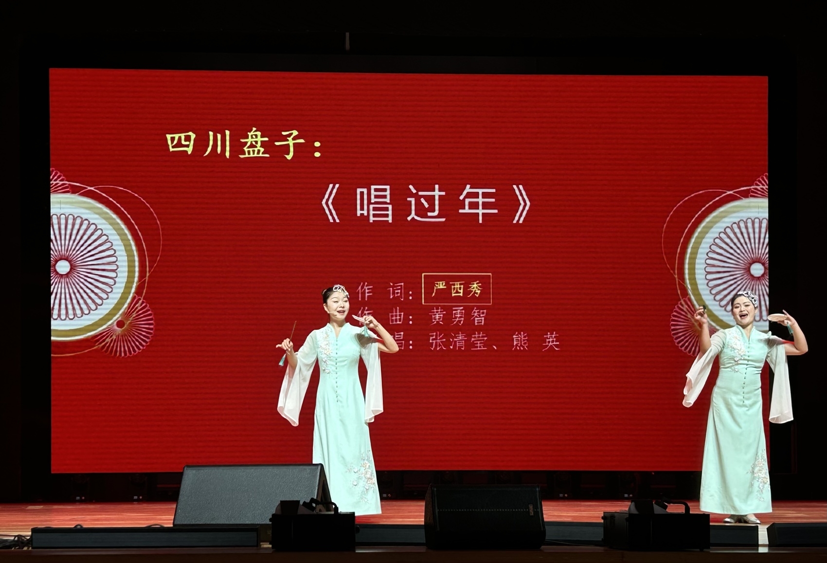 由四川著名曲艺家,国家一级编剧严西秀作词,黄勇智作曲的四川盘子——《唱过年》,曲调清新、歌词轻快,演唱者们手持瓷碟和筷子边演奏边演唱,令现场观众赞不绝口,感受到曲艺文化的独特魅力。