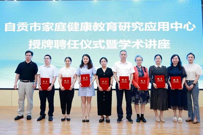 全国高等学校创新健康科普教育联盟向挂靠在医院的自贡市脑科学研究院设立的自贡市家庭健康教育研究应用中心授牌,成立研究应用中心专家组并向专家代表颁发聘书。