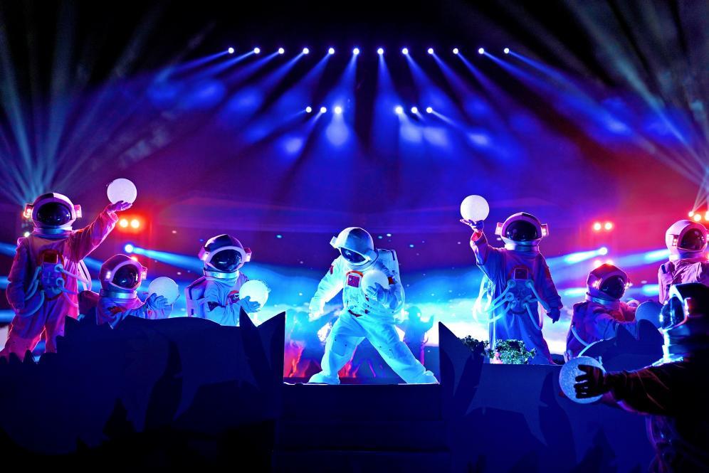 夜幕降临,专为中秋特别打造的“月球狂想曲”夜场活动在中央基地舞台上演,一场融合星际、团圆等元素的主题演出,带领游客带走进了奇幻的中秋之夜。