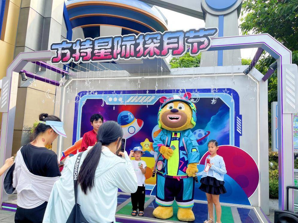 活动期间,自贡方特不仅把营业时间调整为9:00至21:00,还推出了各类惊喜的节日主题活动。圆月、宇航员等星际主题美陈让游客一入园就感受到了不一样的中秋氛围。伴随“星河漫步”欢乐舞蹈,宇航员、熊强三人组等NPC与游客热情互动,中秋欢乐之旅正式开启!