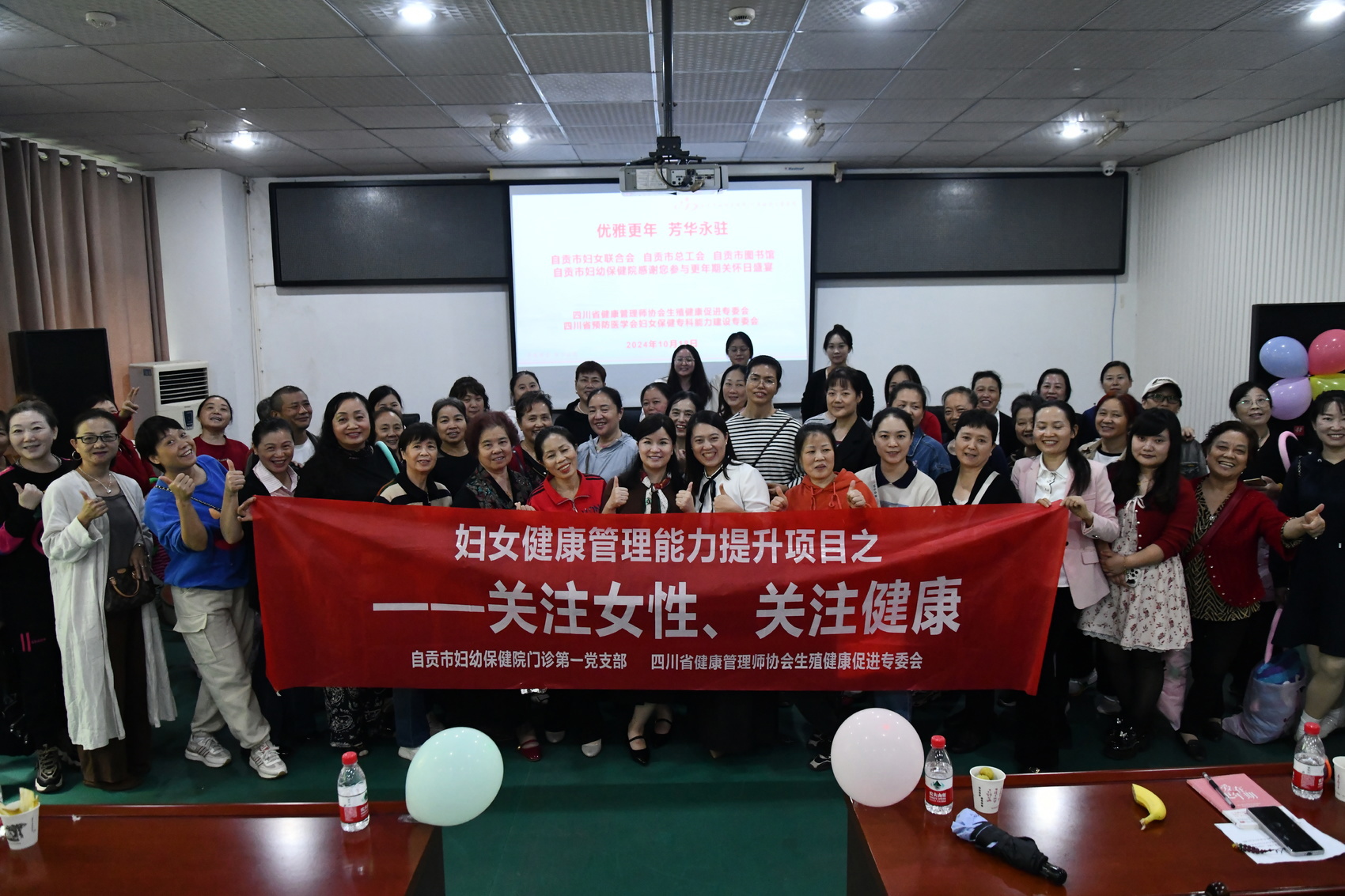 10月18日,在“世界更年期关怀日”与“粉红丝带关爱日”来临之际,自贡市妇幼保健院在四川省健康管理师协会生殖健康促进专委会的指导下,携手自贡市妇女联合会、自贡市总工会、自贡市图书馆,共同精心打造了一场以“优雅更年,芳华永驻”为主题的健康教育沙龙活动,相关企事业单位职工近百人参与活动。