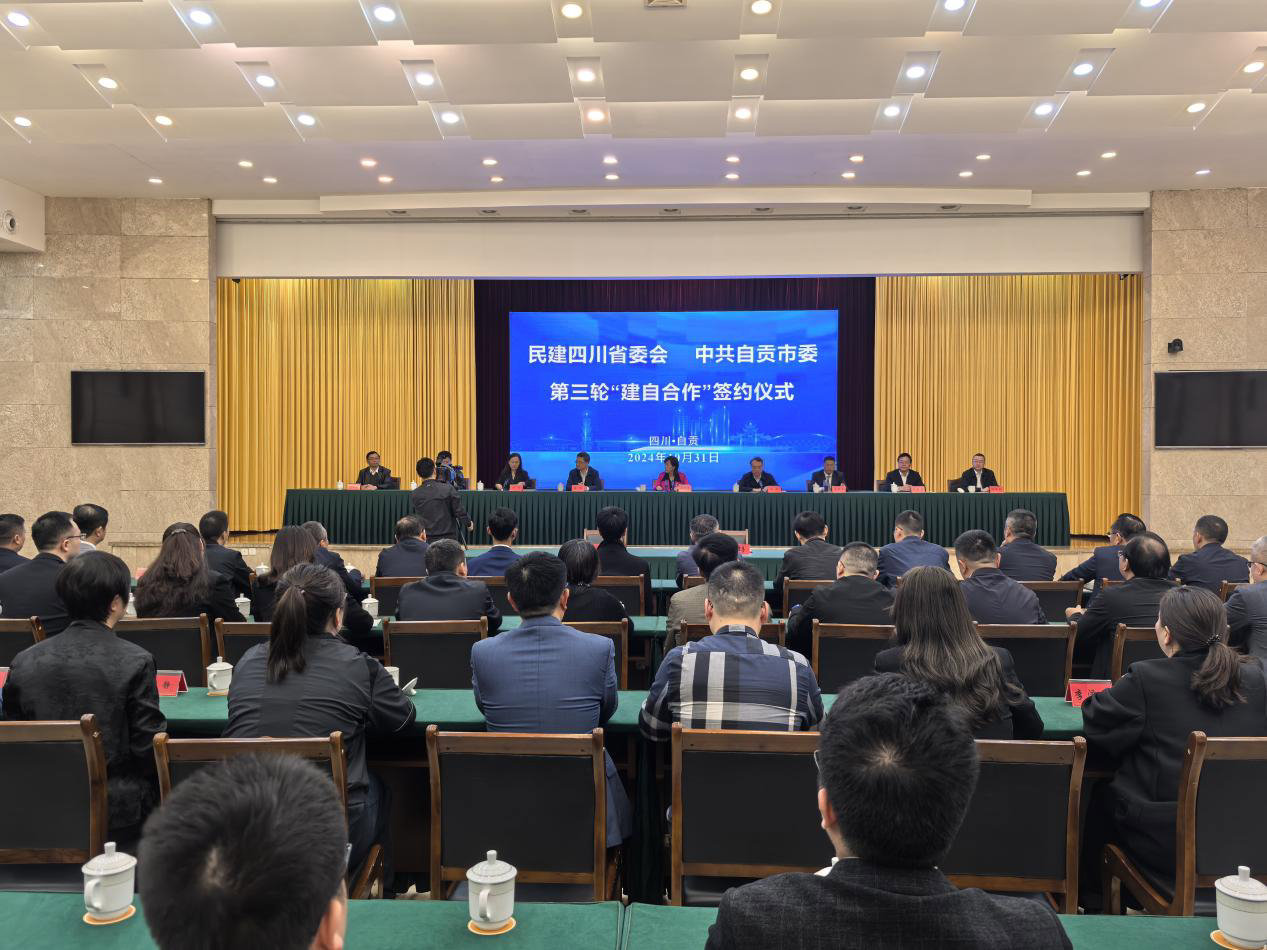 近日,民建四川省委会与中共自贡市委举行第三轮“建自合作”签约仪式,签订为期10年的协议。民建四川省委会将以提供智力支撑为重点,围绕助力成渝地区中部崛起、自贡“四大战略”和“两市两城”建设等,通过资政、项目合作等形式,丰富合作内涵、拓展合作渠道。