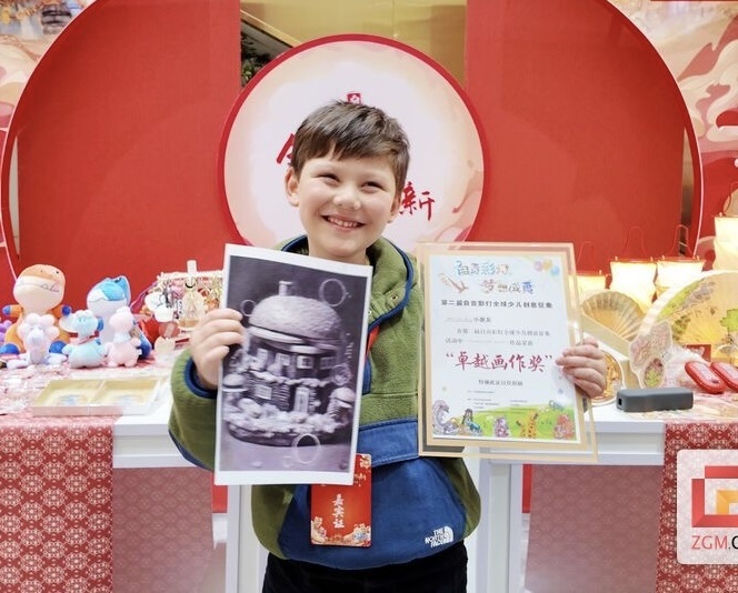 今年7岁半的JONESLEOROY来自美国,从小就喜欢画画的他看到全球彩灯少儿创意征集的活动后非常兴奋,用一个月时间创作出作品《汉堡屋》。他表示:“我喜欢汉堡,所以这就是我画汉堡屋的原因。我希望所有的人都喜欢汉堡包,一起吃,和中国的好朋友一起玩。”