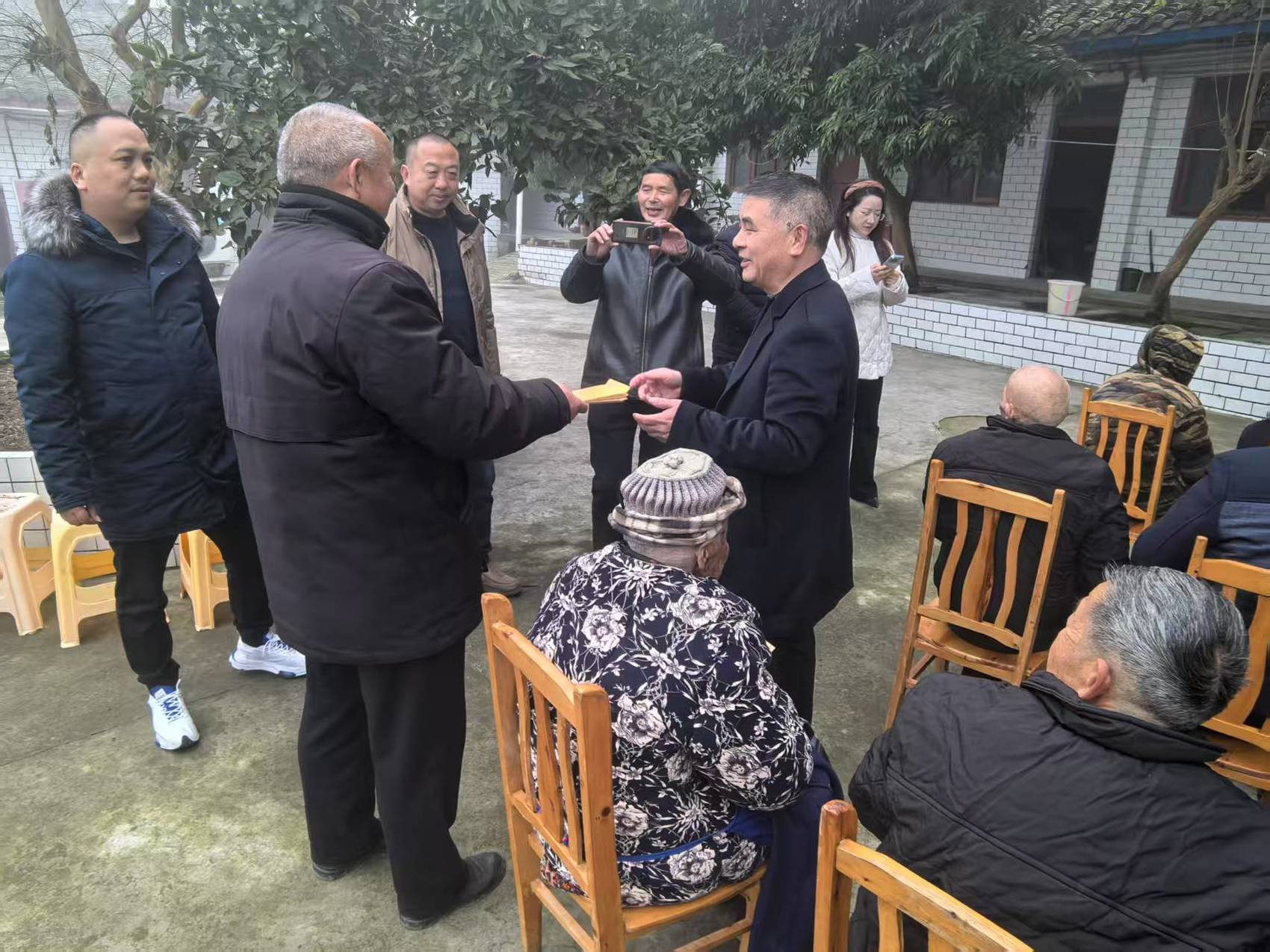 当天,狮市商会会长陈元林、秘书长林学文,副会长叶世华、马家飞等一行人与狮市镇政府相关负责人一同前往敬老院,为老人们送上慰问金和节日的祝福。陈元林会长叮嘱老人们要注意身体,保持健康快乐的生活态度,并表示商会将继续关注老人们的生活,经常来看望大家。“开年后有机会请大家出去逛一下,看看家乡的可喜变化,并请大家吃坝坝宴。”陈元林和老人们又有约定。
