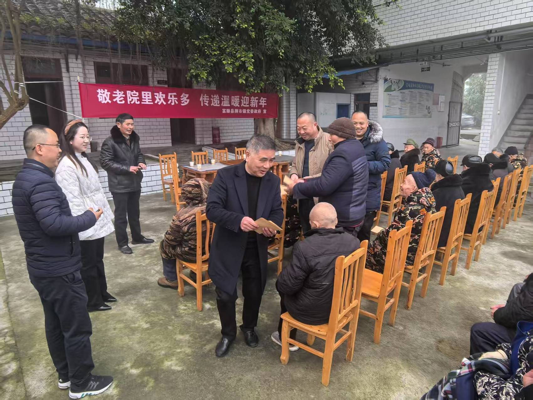 1月19日,富顺县狮市商会携手狮市镇政府,开展一场温馨的新春慰问活动,为狮市敬老院的41位老人送去春节的祝福。