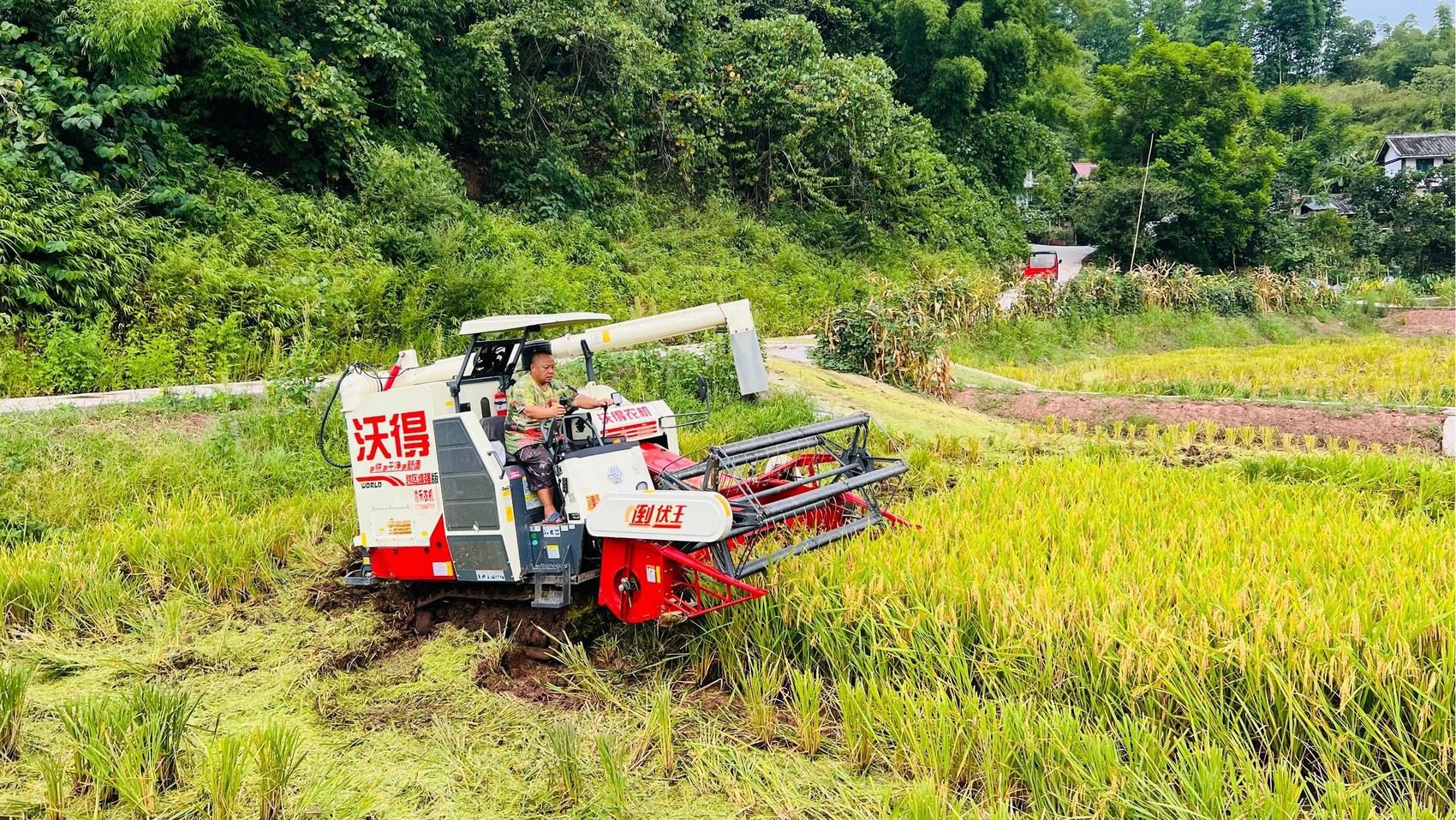 在自贡市沿滩区兴隆镇光辉村,记者看到,收割机在田间高效作业。村民感慨:“过去人工收割费时费力。现在租用村集体农机,一天能收近百亩,省时省力,而且粮食损耗少,质量也高。”