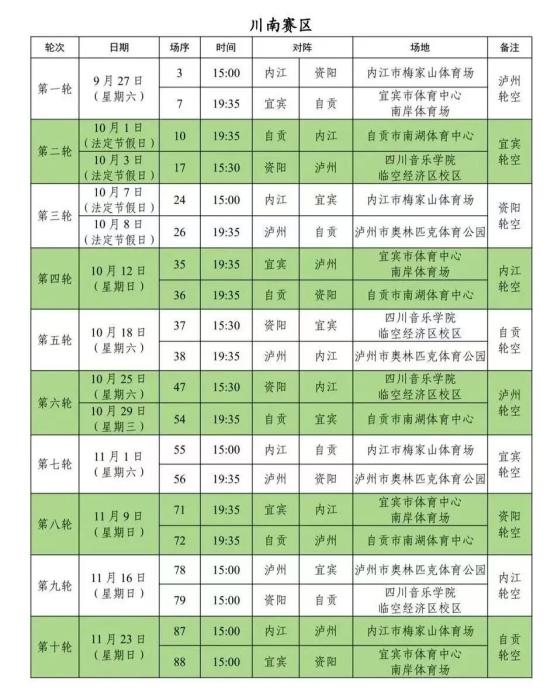 川超川南赛区赛程