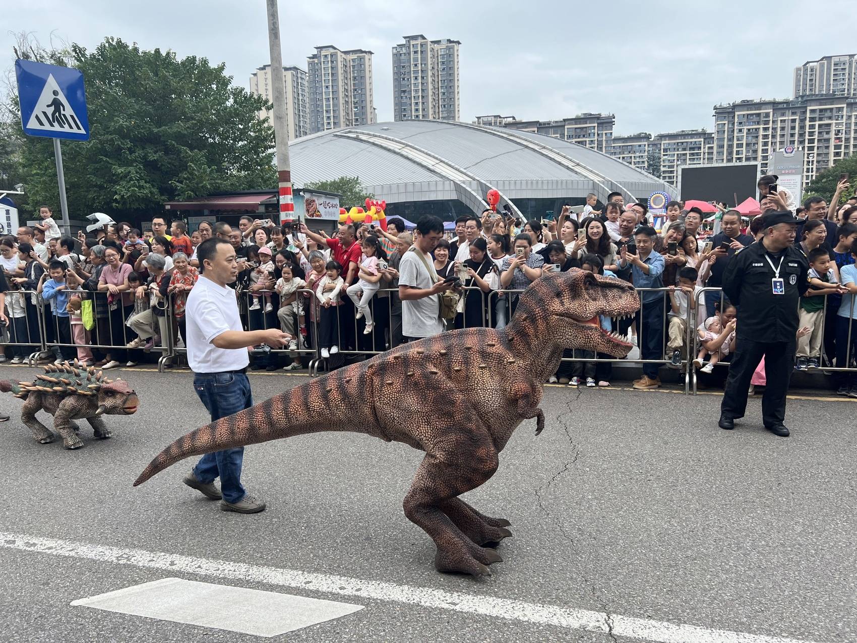 据悉,本次巡游路线覆盖富州大道核心路段,全程近一小时。活动期间,富顺文体中心还同步开设了恐龙科普展与仿真恐龙体验区,为亲子家庭提供寓教于乐的科普平台。