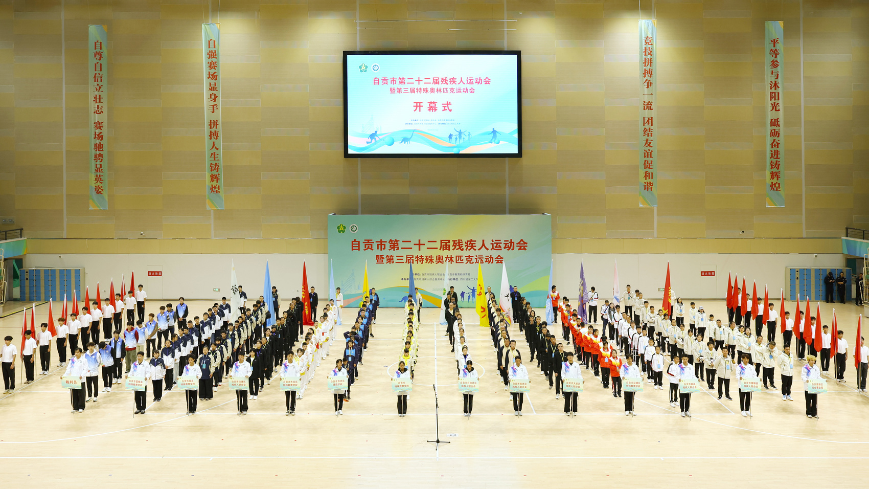 10月28日,自贡市第二十二届残疾人运动会暨第三届特殊奥林匹克运动会在四川轻化工大学开幕。来自全市315名运动员,将参与11个大项、86个组别的比赛。