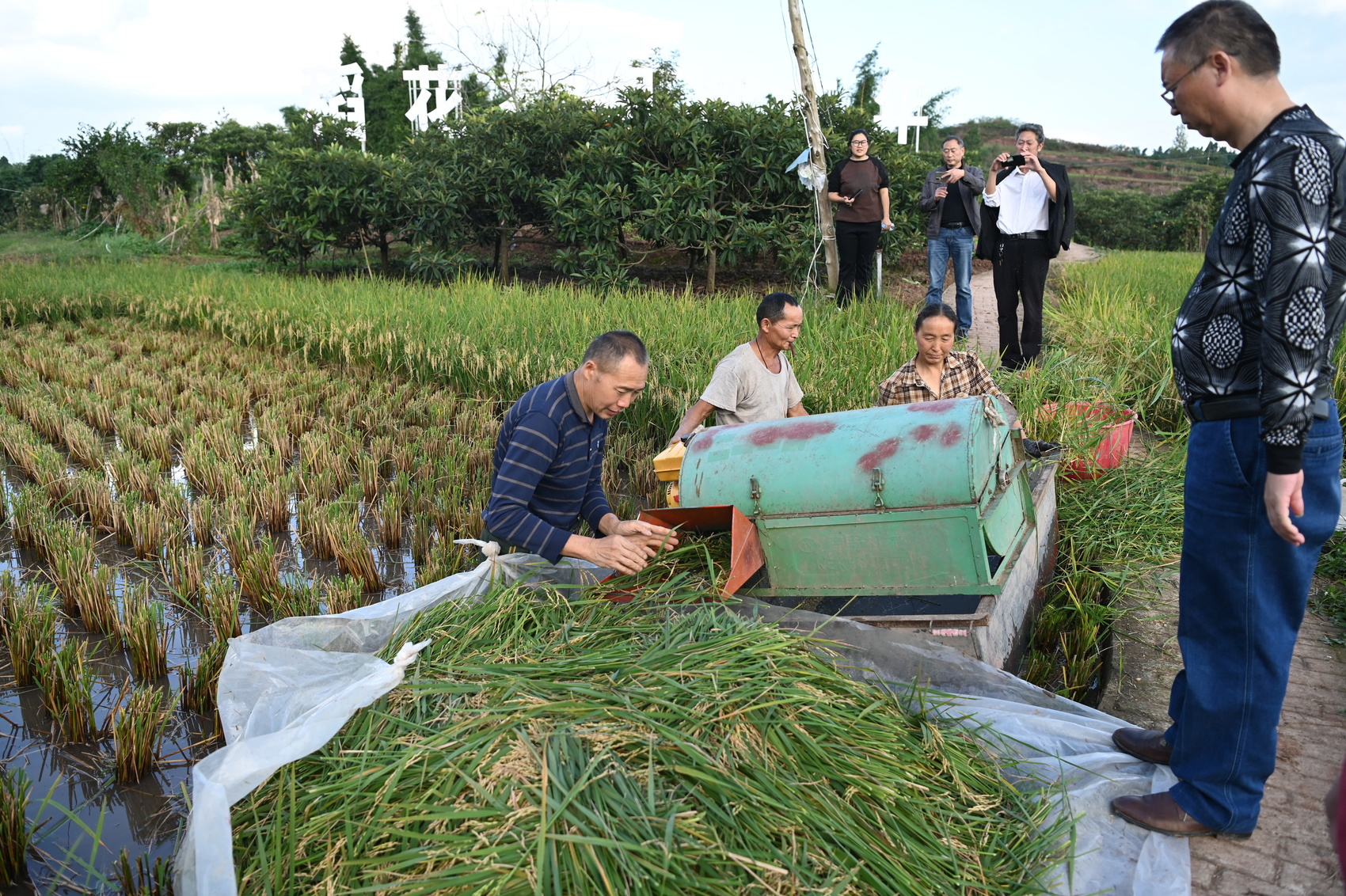 “前几天,一直阴雨连绵,这两天突然放晴了。所以赶快收割,你看这谷子没啥空壳,很饱满,不用测产我都能估计出一亩有300公斤以上的产量!”村民谢仲才一边挥舞砂刀收割一边介绍。