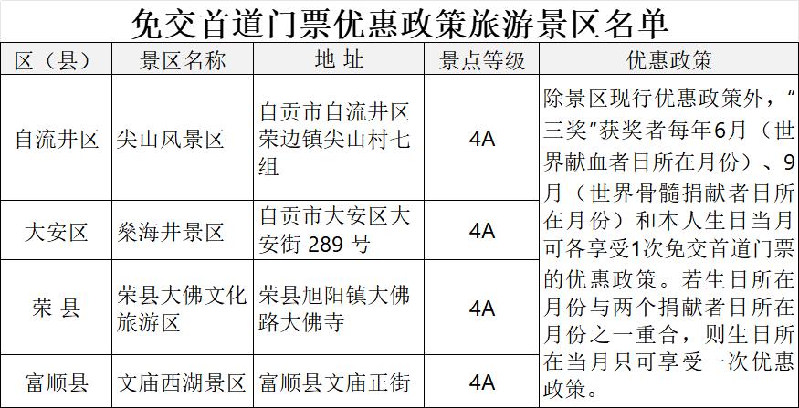 具体政策内容包括,免费乘坐自贡市主城区范围内的所有常规公交线路(不含定制公交、旅游专线、快线等特殊公交线路)。在自贡市内公立医疗机构就医时免交普通门诊诊查费自费部分(不含专家门诊、特需门诊等)。在游览自贡市内由政府投资主办的部分国有A级旅游景区时,可以享受免交首道门票的优惠政策。