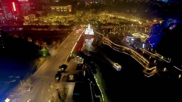 作为四川国际文化旅游节、第二届自贡国际恐龙灯光节核心项目——“夜游釜溪”在2019年一推出即成为“网红”景点,是全省三大夜游项目之一。该项目在釜溪河城区6公里的河道上,集中打造“一河三湾二十四景点”的夜游线路,通过传统彩灯加现代声、影、光、电等新兴工艺,呈现“彩灯辉映碧水流”的盛景。