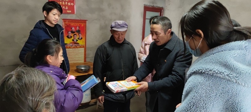 这是1月14日下午,该校党支部组织党员教师开展走访慰问活动的暖心一幕。党员教师们特意为留守儿童送去孩子们喜欢的羽毛球、书籍等学习文体用品。
