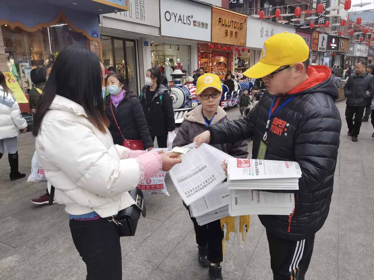 该社区初一学生代表缪杨梓灏阳光而开朗,手捧厚厚的报纸,自信又从容。他表示,爱心售卖报纸,不仅锻炼了自己的胆量,还能传递爱心是件很有意义的事。