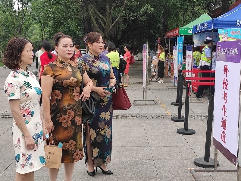 “这身旗袍是儿子中考时买的,孩子发挥不错,考上了蜀光二中。这次也讨个喜头,希望能考个好成绩。”一位考生家长告诉记者,这次考试自己和丈夫做好了准备,给孩子准备了一些补给品,自己也带了板凳“坐等”孩子的好消息。