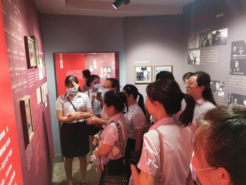 在红梅花开展厅,党员们参观艺术作品中的江姐作品展,党员们唱起《红梅赞》《没有共产党就没有新中国》等红歌,深情缅怀革命先烈,感恩伟大的中国共产党。